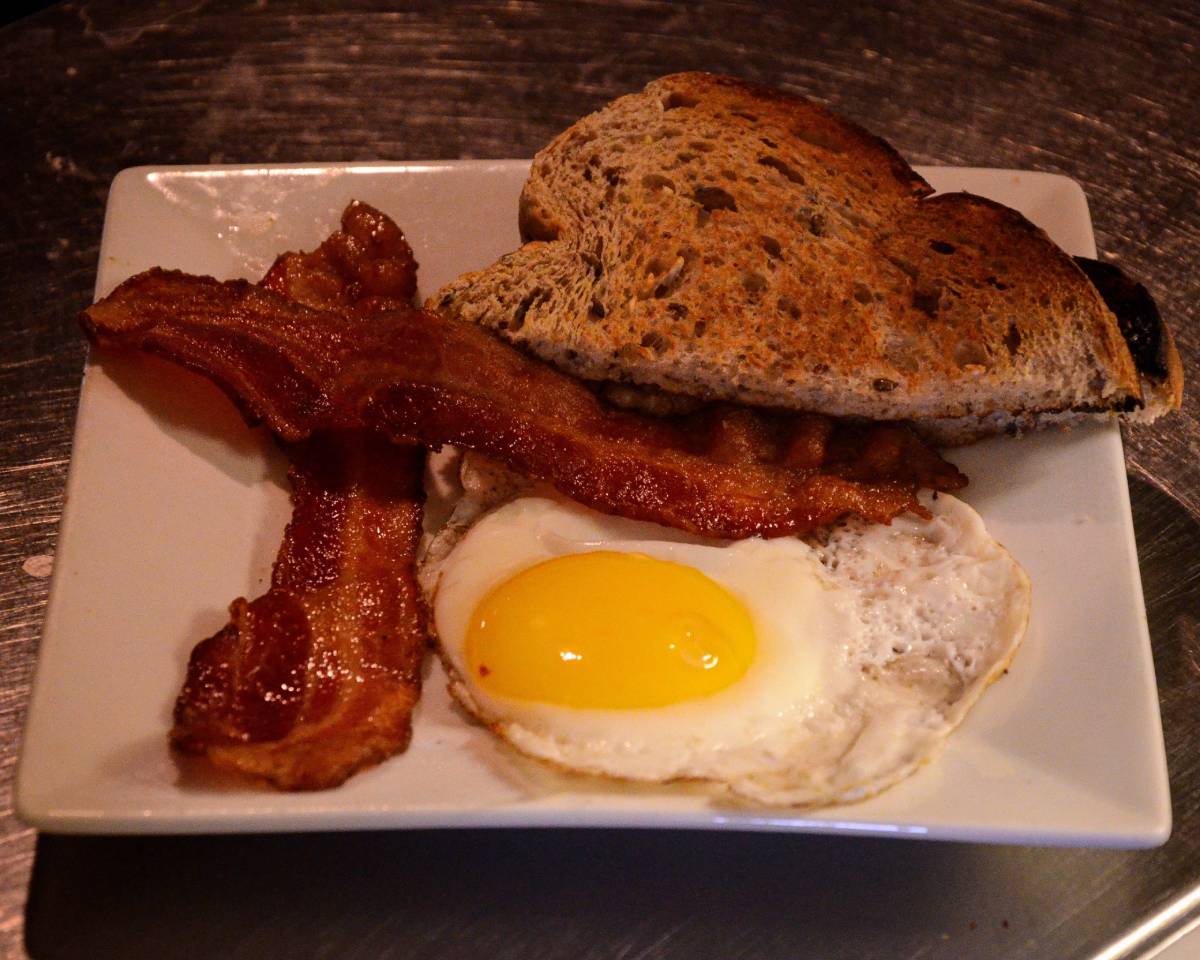 Breakfast Sandwich with choice of bagel or toast, one egg, ham or bacon & cheese.