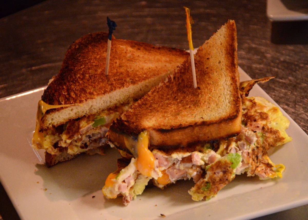 Eggs, green pepper, onion, and ham with Cheddar on choice of toast